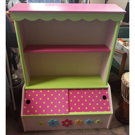 Couleurs vives (rose, vert) et motifs fleurs, parfait pour une chambre joyeuse et organisée.