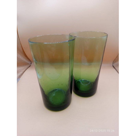 LOT DE 2 VERRES HAUTS EN VERRE VERT FUMé