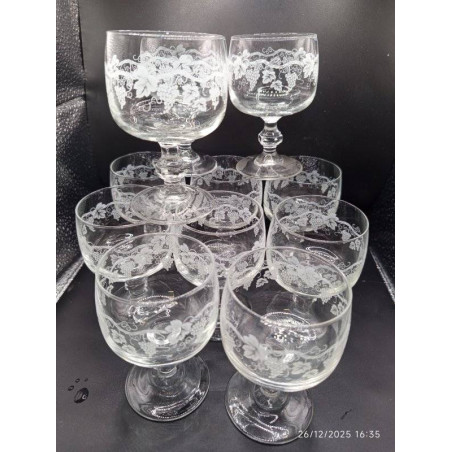 11 VERRES à PIED GRAVéS (MOTIF RAISIN) :