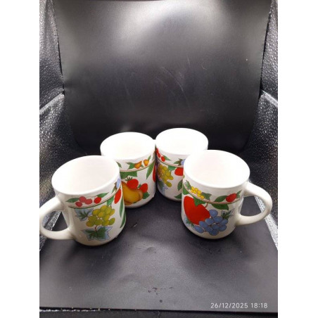 4 MUGS EN FAïENCE, DéCOR FRUITS